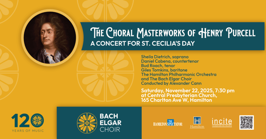 BEC continues its theme of a concert celebrating St. Cecilia’s Day, November 22nd. The program celebrates the life and works of Henry Purcell, with a special focus on his odes and operas. The emphasis on St. Cecilia highlights the rise of concert music as a public phenomenon, no longer confined to court or church. Through the emergence of the English Baroque and the development of opera, we glimpse a society awakening to the power of free expression in art. Featuring selections from works spanning Purcell’s career, including Welcome to all the Pleasures, Dido and Aeneas and the Fairy Queen.